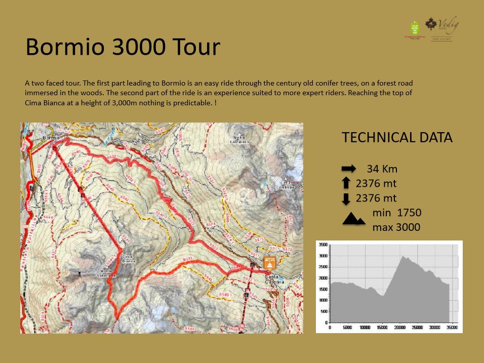 2 cableways from S.Caterina 1,750 m, to Sunny Valley at 2,800 m – from Bormio 1,200 m to Bormio at 3,000 m.